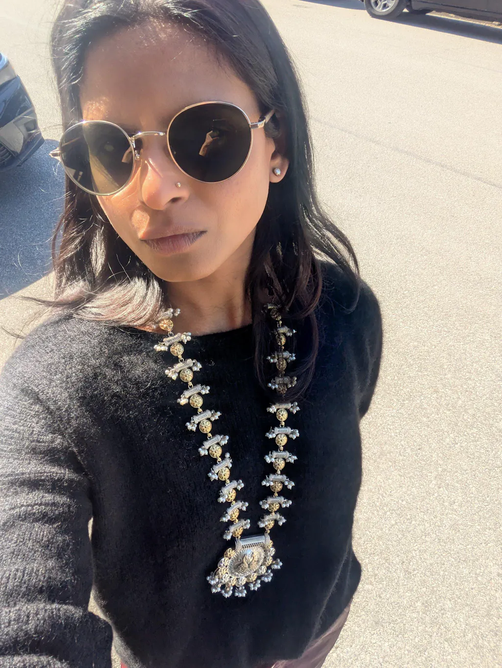 Each MAABAE piece is intentionally finished using a specialised oxidizer ion process after plating to create this vintage-inspired darkened finish. This process enhances the shadows and textures of the design and gives every piece its antique look. Your jewellery will continue to oxidise naturally over time.