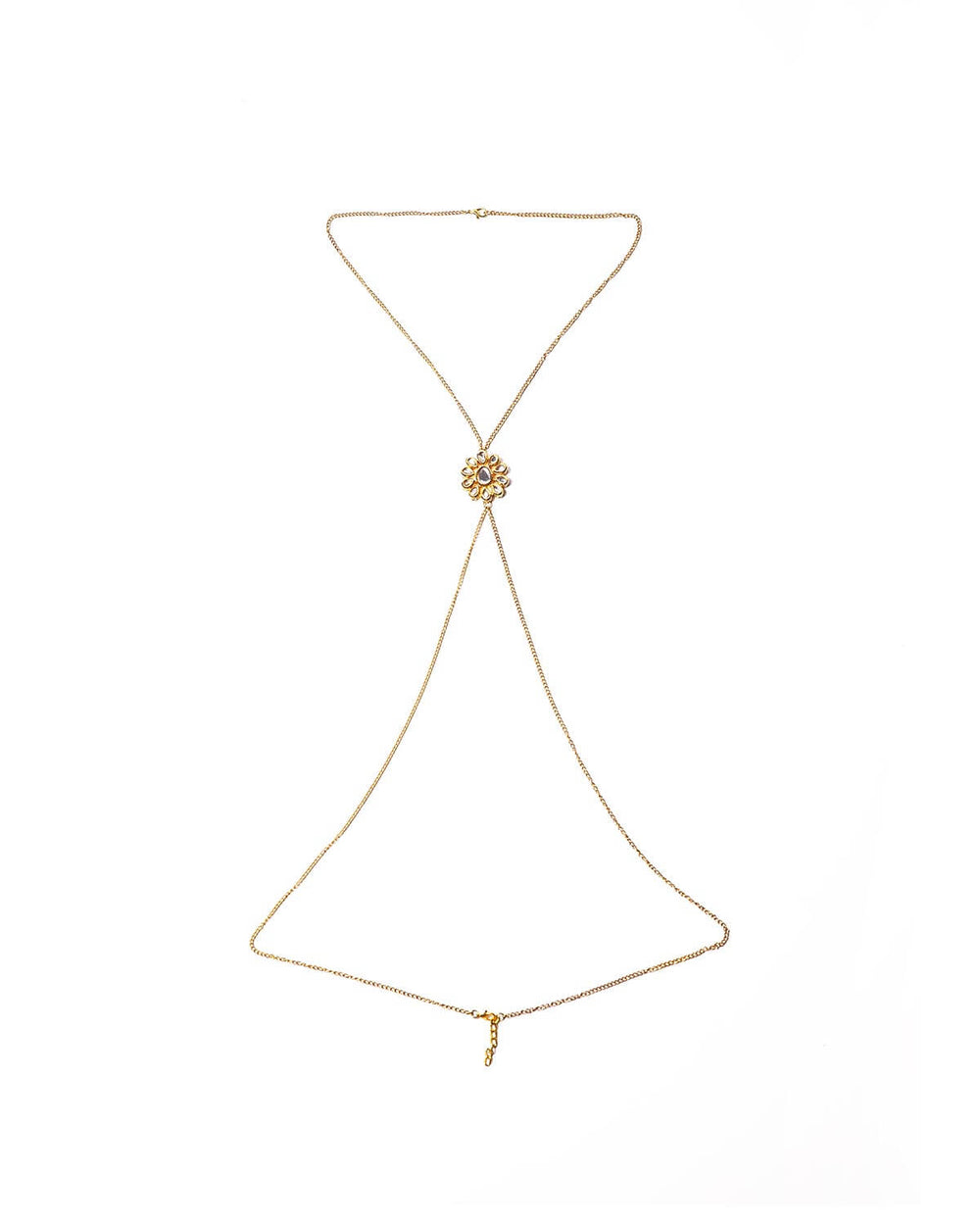 Crafted with beautiful kundans from our Golden Mina Necklace this body chain is the perfect addition to hug an outfit together with elegance.