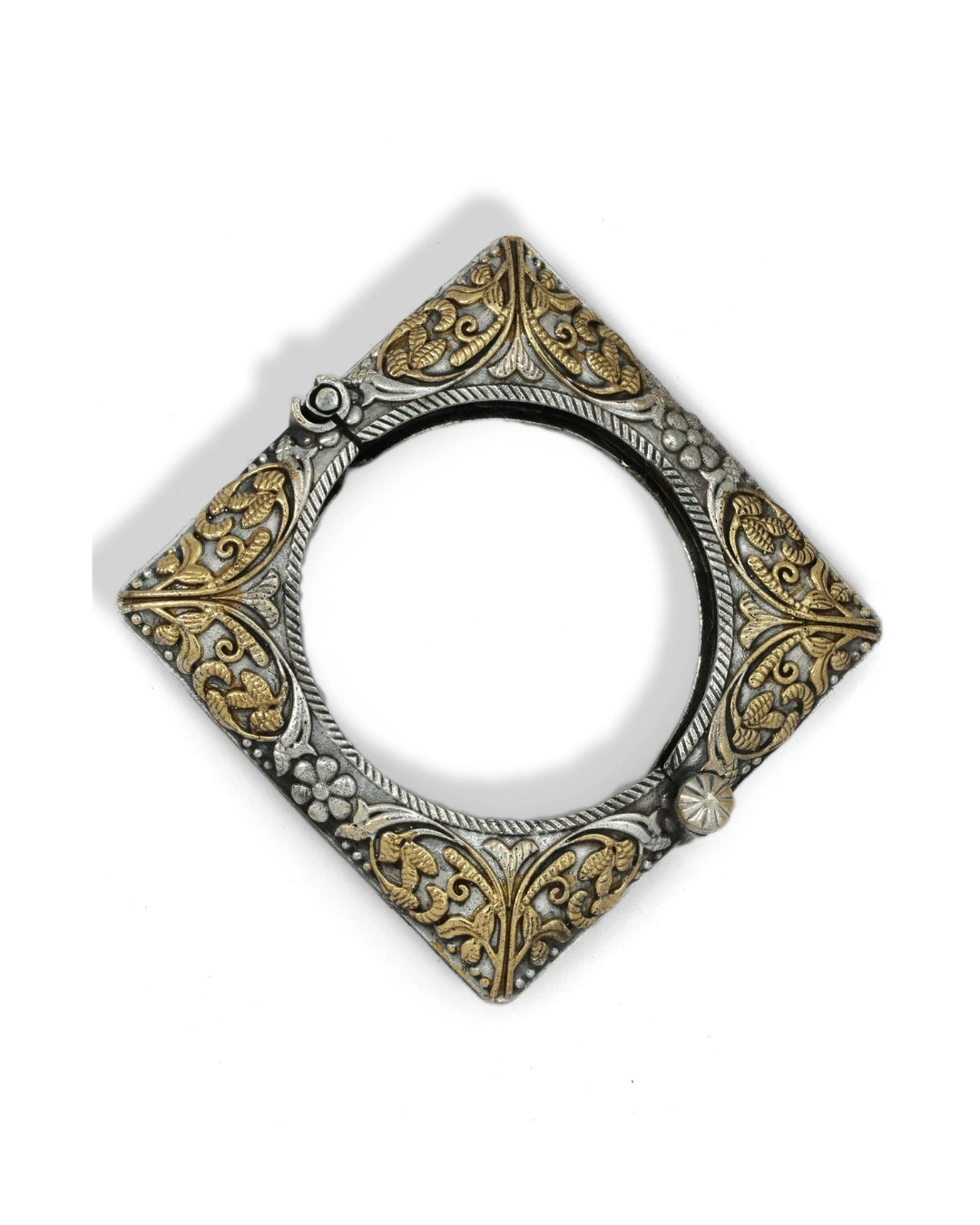 - Oxidised gold and silver finish
