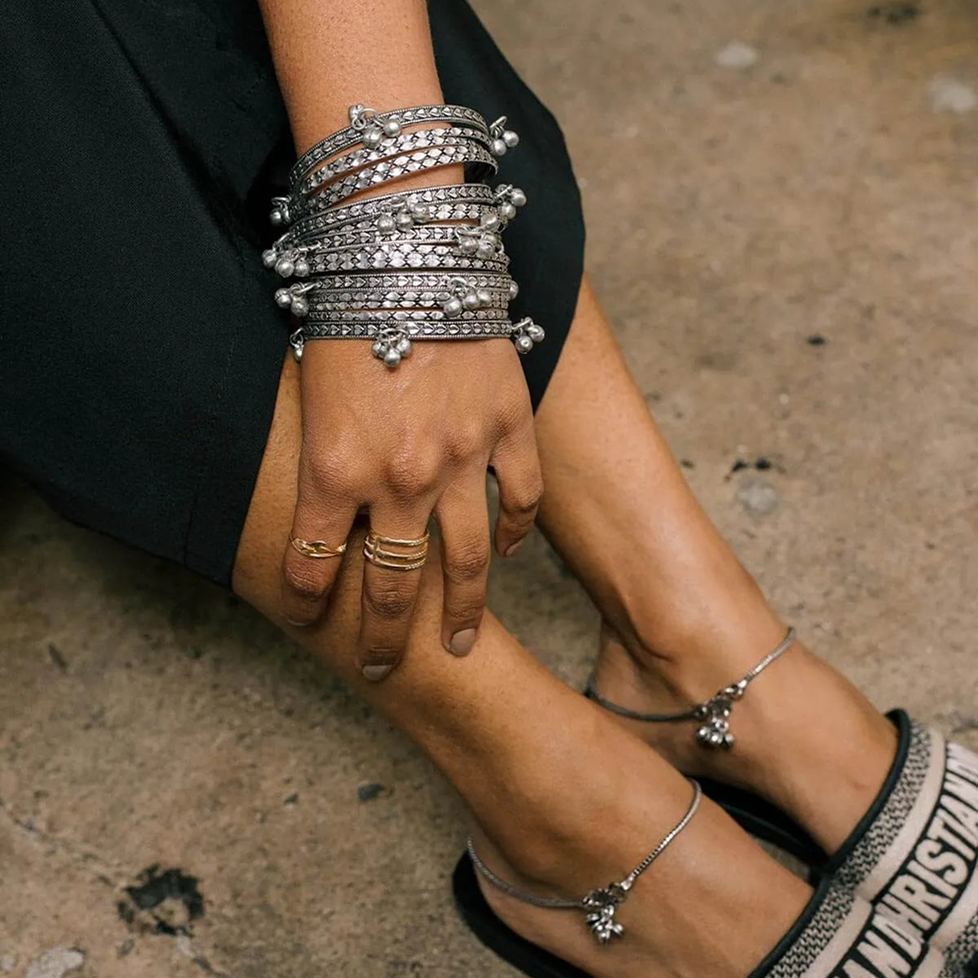 For centuries, chunky silver bangles and kadas were worn by India’s and much of South East Asia's nomadic and tribal communities as everyday adornment. Stacked at the wrist as symbols of identity, protection, status, and history. These pieces were not delicate. They were bold, weighty, and powerful, designed to move through life with the wearer - from ritual to labor to celebration.