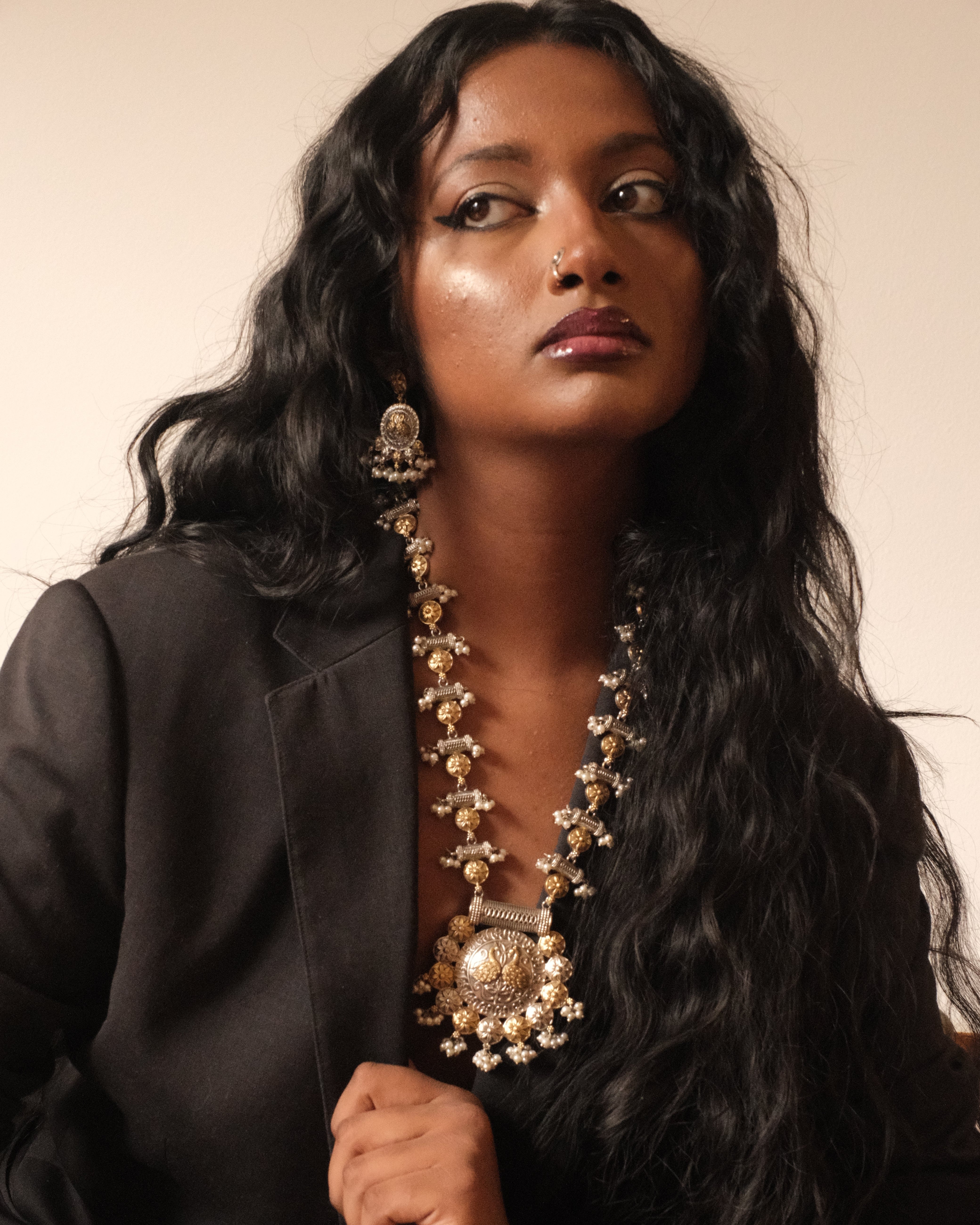 Each MAABAE piece is intentionally finished using a specialised oxidizer ion process after plating to create this vintage-inspired darkened finish. This process enhances the shadows and textures of the design and gives every piece its antique look. Your jewellery will continue to oxidise naturally over time.