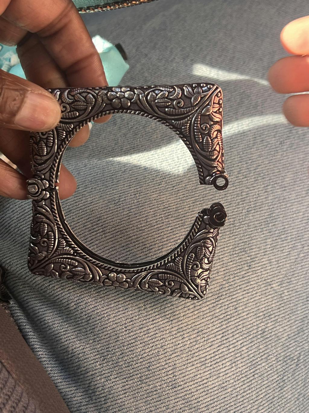- Oxidised silver finish
